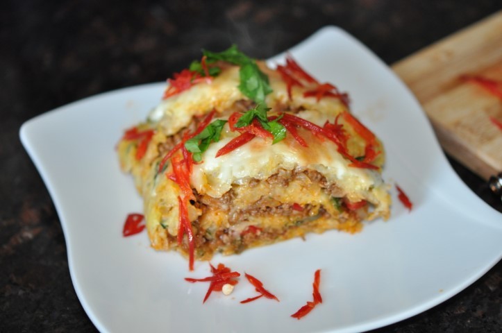 Yağlı kağıt serilmiş kare fırın tepsine patatesli harç yayılarak önceden ısıtılmış 180 derecelik fırında (alt rafına konularak) üzeri kızarana kadar pişirilir.