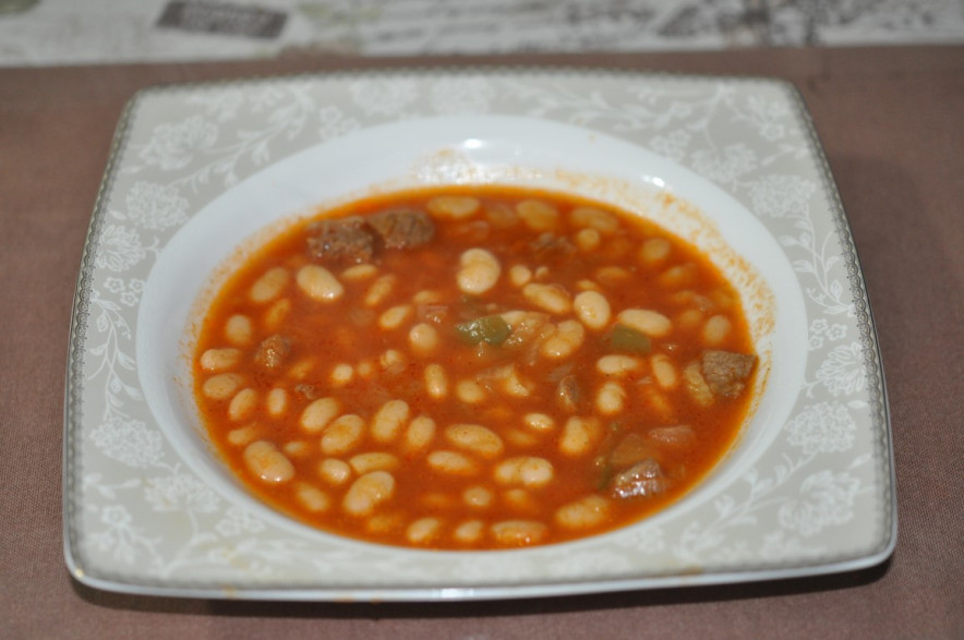 Kuru fasulyeyi akşamdan ıslatıp sabah yıkayıp diri kalacak şekilde haşlıyoruz.
