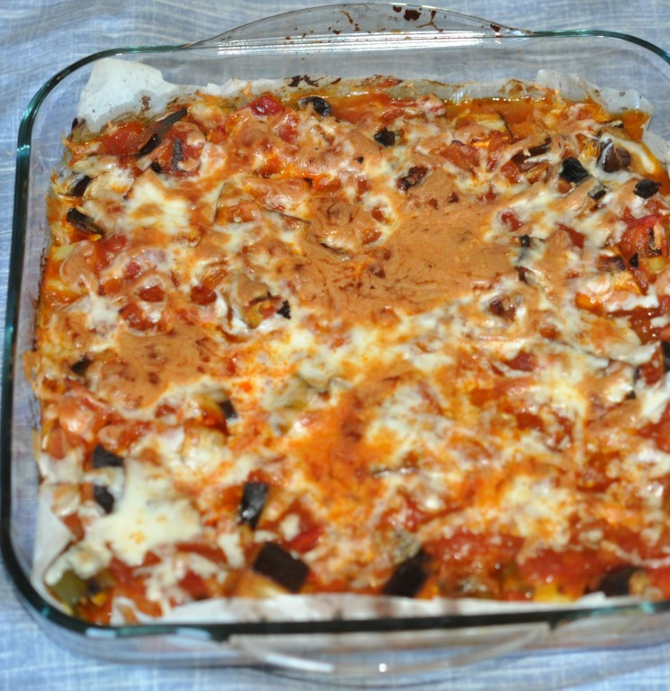 Fırından çıkarılan sebzelerin üzerine domates sosunu ve 1 çay bardağı sıcak suyu ekleyerek 180 derecelik fırında 15 dakika pişmeye bırakılır.