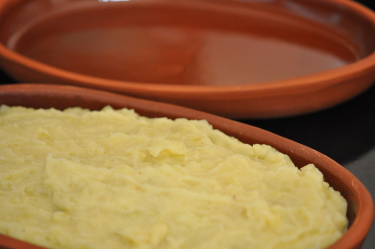 Tencerenin içine patatesler, tere yağ, süt, karabiber ve tuz konularak 3-5 dakika ocakta karıştırılarak pişirilir.
