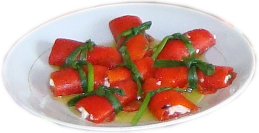 Kırmızı biberleri közleyin. Kabuklarını soyup çekirdeklerini temizleyin.uzunlamasına ikiye ayırın