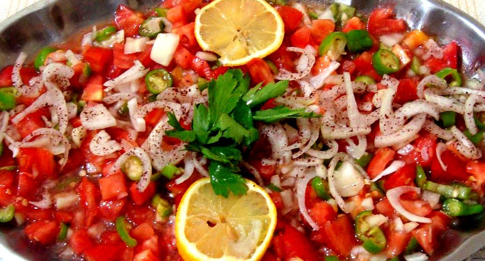 Tüm malzemeler bir kapta karıştırılır üzerine sumak serpilir