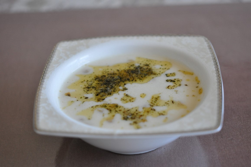 Yoğurt ile un çırpılır içine sarımsaklar rendelenir çorbanın suyundan ilave edilerek ılınması sağlanır.