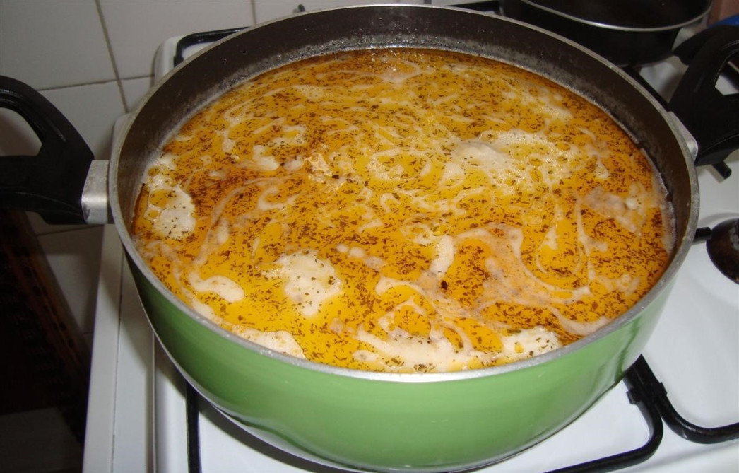 Tavada hazırladığımız karışım çorbanın üzerine dökülür.
